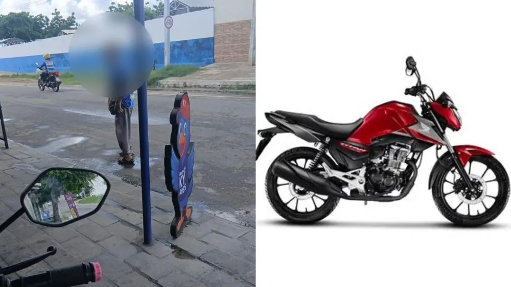 O veículo levado é uma Honda Titan vermelha, modelo 2024, de placa QSL-4B32.