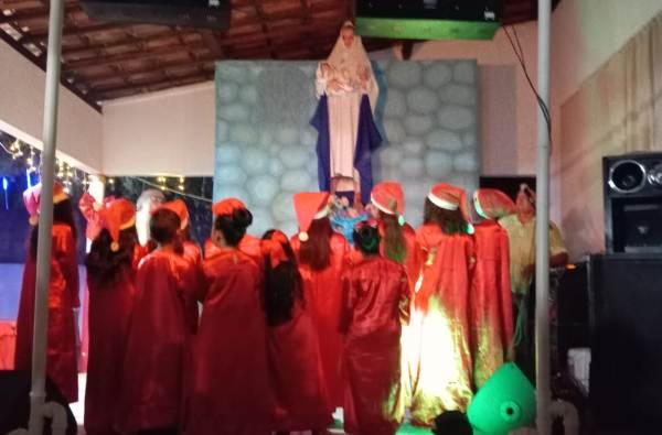 Ocorreu a belíssima apresentação do Coral Natalino e a encenação do Nascimento de Jesus Cristo executadas pelos usuários do SCFV. Idosos também leram poemas.