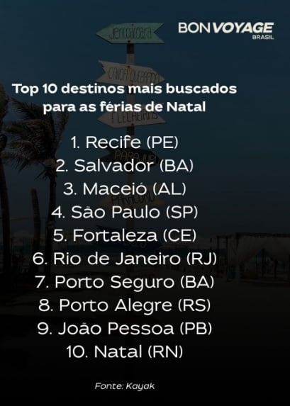 O estudo mostra que sete das dez cidades mais buscadas estão no Nordeste, com Recife (PE), Salvador (BA) e Maceió (AL) no topo da lista, seguidas por São Paulo (SP) e Fortaleza (CE). Porto Seguro (BA), Porto Alegre (RS), João Pessoa (PB) e Natal (RN) completam o Top 10.