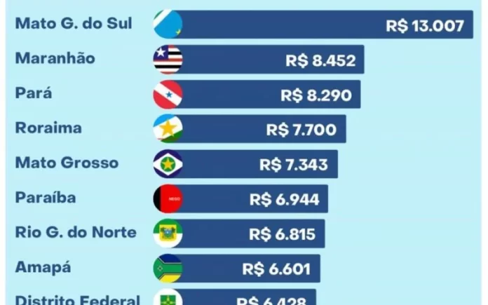 A Paraíba segundo estudo paga aos seus professores da rede estadual R$6.944, estando apenas atrás no Maranhão no Nordeste e a frente de estados considerados grandes em termos de recursos econômicos como: Distrito Federal; Pernambuco; São Paulo; Rio Grande do Sul, etc.