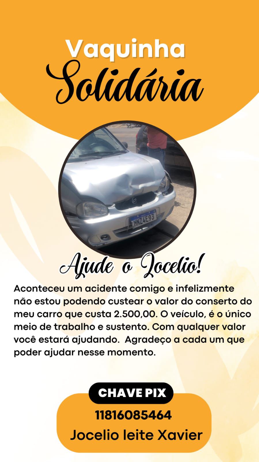 O motorista de transporte alternativo, Jocélio Xavier (36), entrou em contato com a Redação do Portal Santa Teresinha para informar sobre uma vaquinha online que foi criada para ajudar no conserto do seu carro que se envolveu em um acidente na última quinta-feira (23), na cidade de Patos (PB).