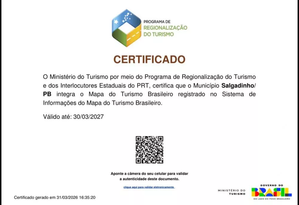 Com essa conquista, Salgadinho passa a ter ainda mais respaldo para desenvolver políticas públicas voltadas ao turismo, valorizando suas potencialidades, cultura e identidade regional, com destaque para suas riquezas minerais.
