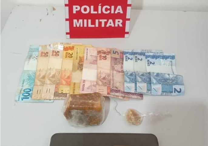 Dando continuidade à ocorrência, as guarnições se deslocaram até um imóvel apontado nas denúncias, onde flagraram uma mulher tentando ocultar porções fracionadas de substância análoga ao crack, além da quantia de R$ 271,00 em espécie, em um compartimento da residência. Também foi apreendido um aparelho celular, possivelmente utilizado na atividade ilícita.