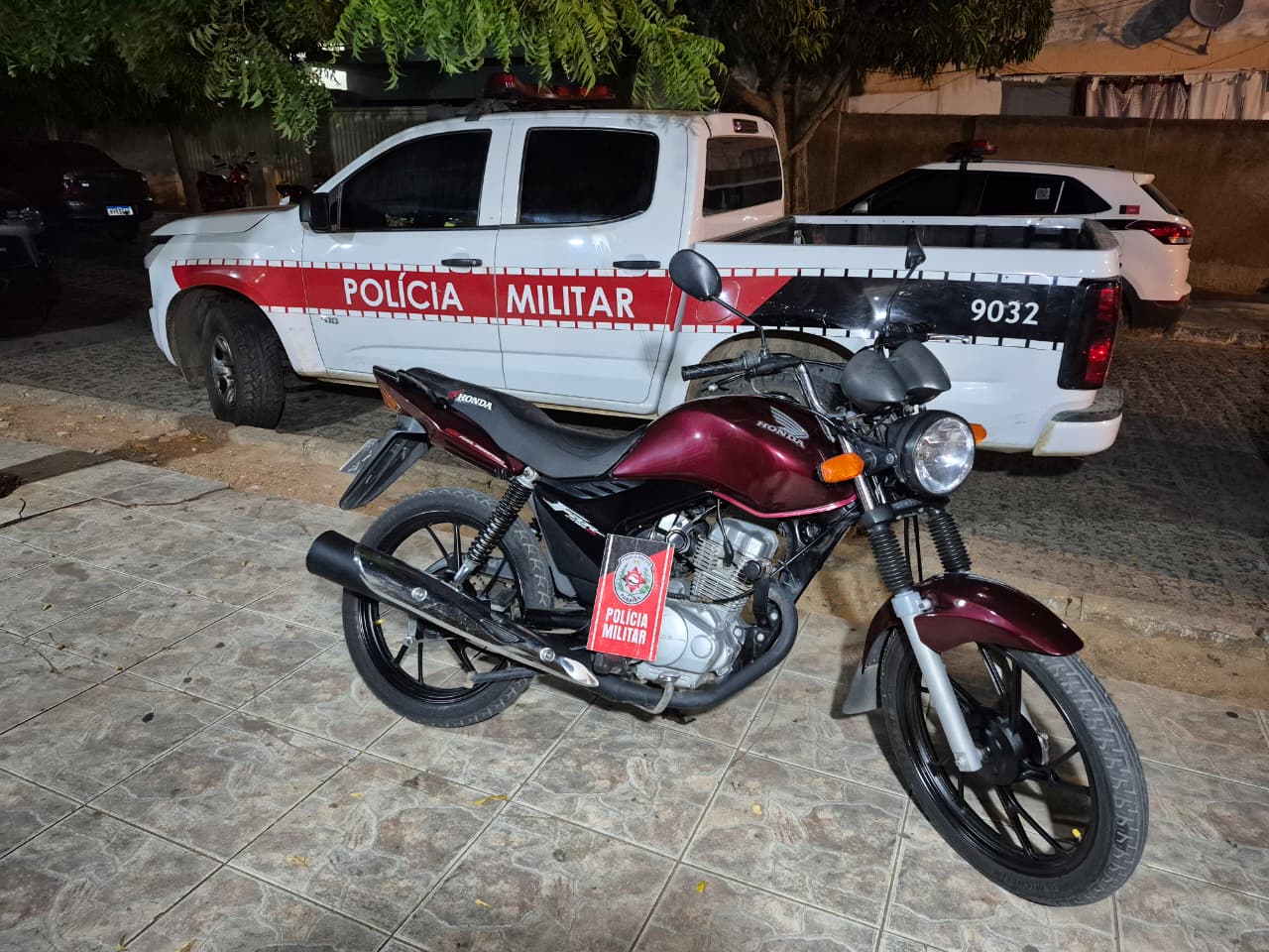 Nesta quarta-feira (10), a Polícia Militar, através do 12º Batalhão, apreendeu uma moto Honda Fan vermelha com indícios de adulteração veicular. A apreensão ocorreu durante patrulhamento no centro da cidade de Riacho dos Cavalos.