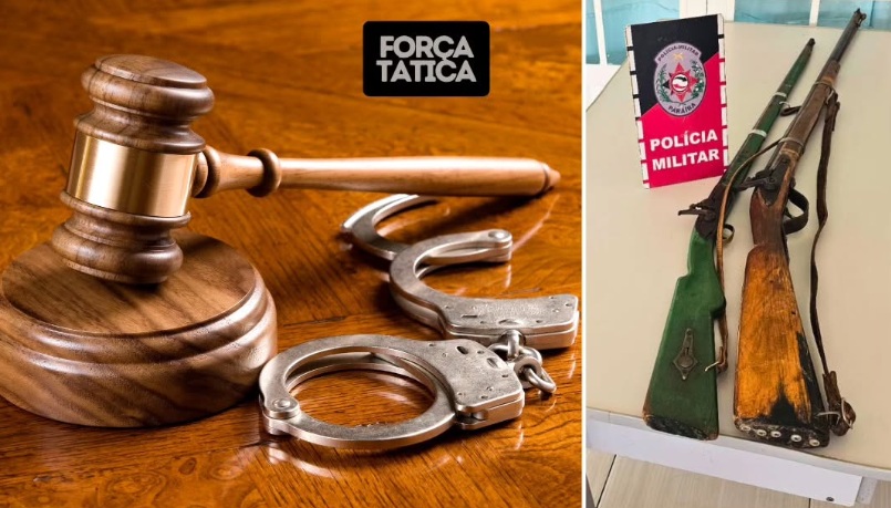 A ação foi desencadeada após informações sobre a ordem judicial. Durante a diligência, além da captura do suspeito, os policiais apreenderam o armamento que estava no interior da residência.