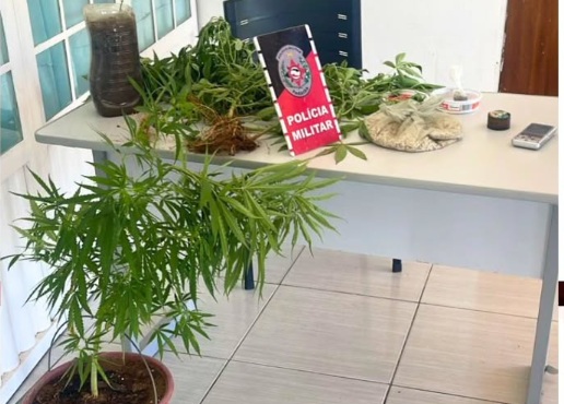No local, foram encontrados oito pés de Cannabis Sativa. A mulher também entregou voluntariamente uma porção de substância análoga à maconha, uma balança de precisão, um dichavador e uma porção de adubo utilizado no cultivo.