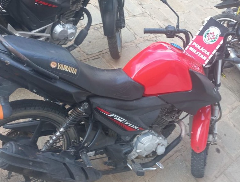 A guarnição recebeu informações repassadas pelo Centro Integrado de Comando e Controle (CICC), dando conta de que uma motocicleta estaria circulando nas proximidades do mercado público do município. Diante disso, os policiais realizaram diligências e localizaram o veículo estacionado em frente ao mercado público, na Rua Pedro Firmino.