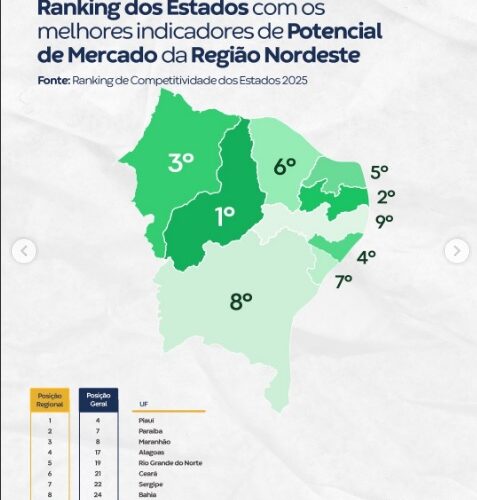 O Ranking de Competitividade dos Estados 2025, elaborado pelo Centro de Liderança Pública (CLP), apontou que a Paraíba é o segundo estado do Nordeste e o sétimo do Brasil com melhores indicadores de Mercado. Para se ter ideia, no NE a Paraíba só fica atrás do estado de Piauí.