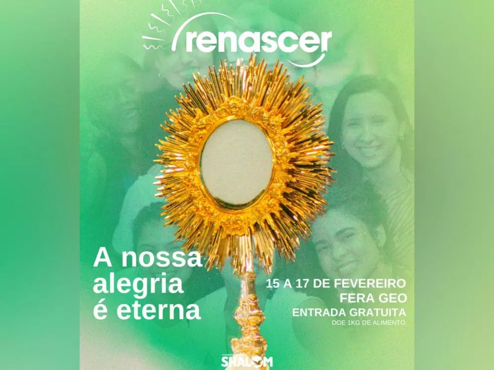 Entre os dias 15 e 17 de fevereiro, a cidade de Patos será palco do Renascer 2026, evento promovido pela Comunidade Católica Shalom, que propõe uma vivência diferente durante o período carnavalesco. A programação acontecerá no Fera Colégio e Curso e será aberta a todos os públicos, com entrada gratuita, mediante a doação de 1kg de alimento.