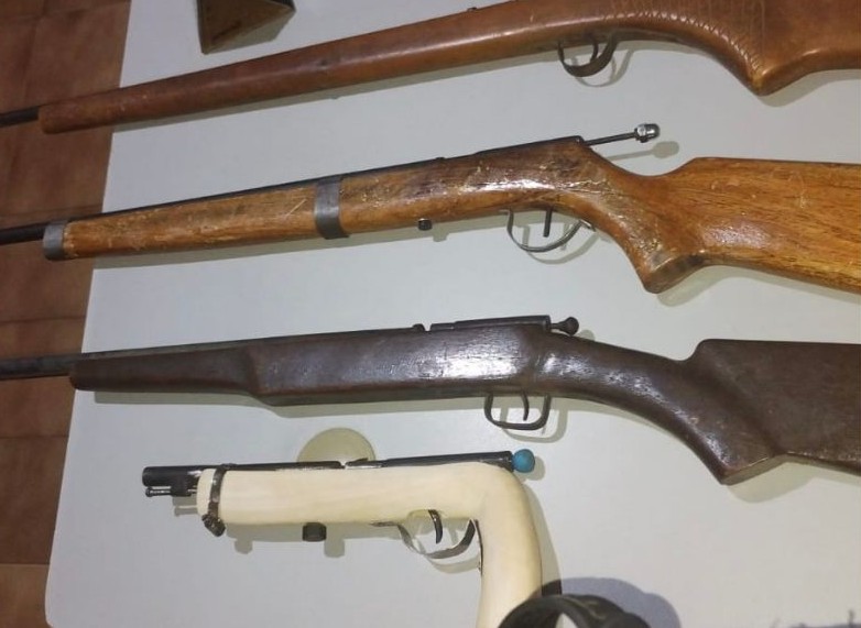 Com base nas informações obtidas, as equipes se dirigiram até a residência de um cidadão que, segundo relatos, teria se envolvido em uma agressão física com a vítima horas antes do fato. O pai do suspeito autorizou a entrada dos policiais no imóvel, onde foram encontradas quatro armas de fogo de fabricação artesanal.